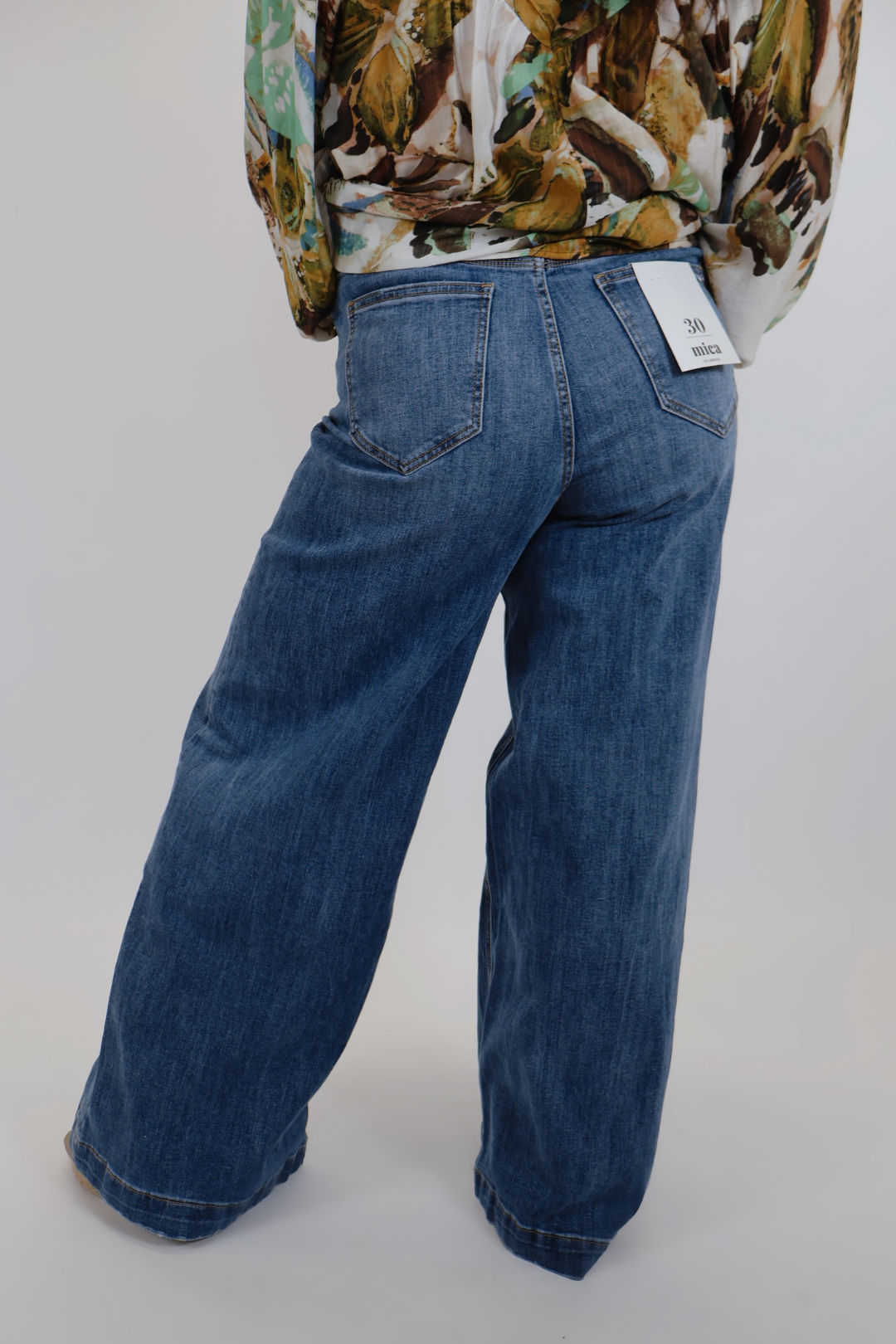 Realizzati in denim di alta qualità con lavaggio medio, i jeans a gamba larga Camila offrono una vestibilità strutturata che mantiene la forma pur lasciandoti libertà di movimento. Che tu stia andando a un brunch o che ti stia vestendo elegante per una serata fuori, Camila fa la differenza, senza sforzo.