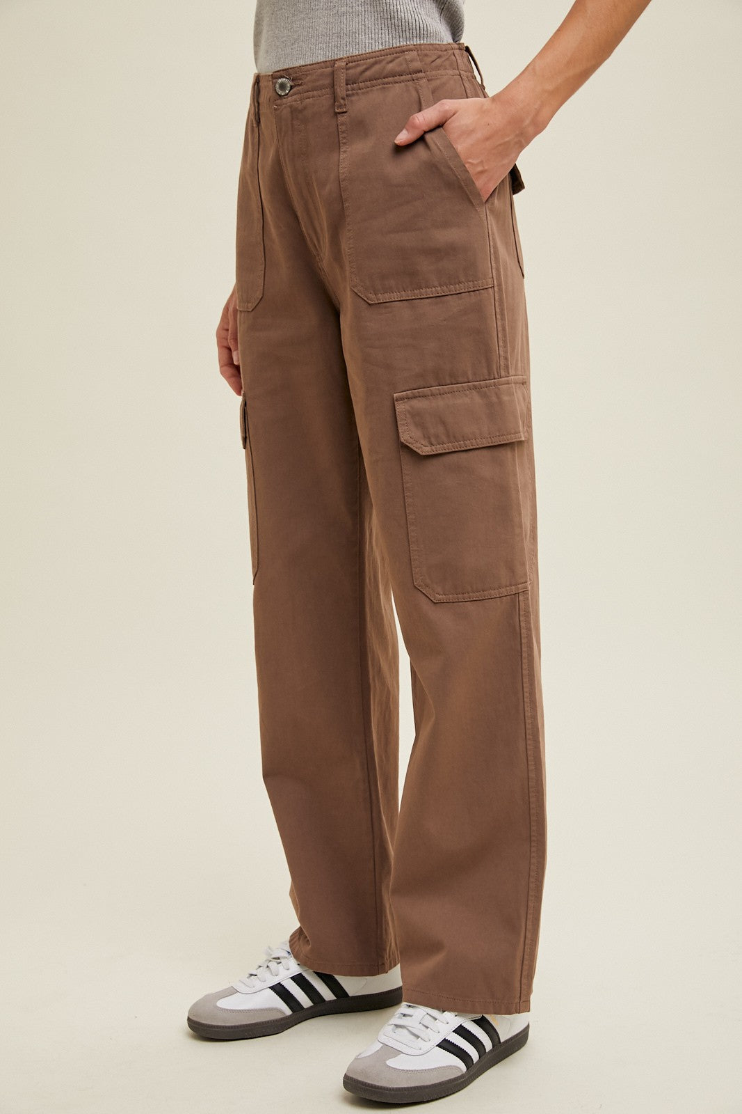 Scopri il tuo nuovo capo preferito per un comfort casual e uno stile disinvolto. I pantaloni cargo Harper donano un tocco casual ma raffinato al tuo guardaroba con la loro silhouette a gamba dritta e il morbido tessuto 100% cotone. Dotati di pratiche tasche frontali applicate, classiche tasche cargo laterali e un comodo elastico in vita posteriore, questi pantaloni offrono funzionalità e una vestibilità comoda. Rifiniti con passanti per cintura e una chiusura sicura con bottone e cerniera, sono perfetti per l'uso quotidiano, dalle commissioni alle avventure del fine settimana.