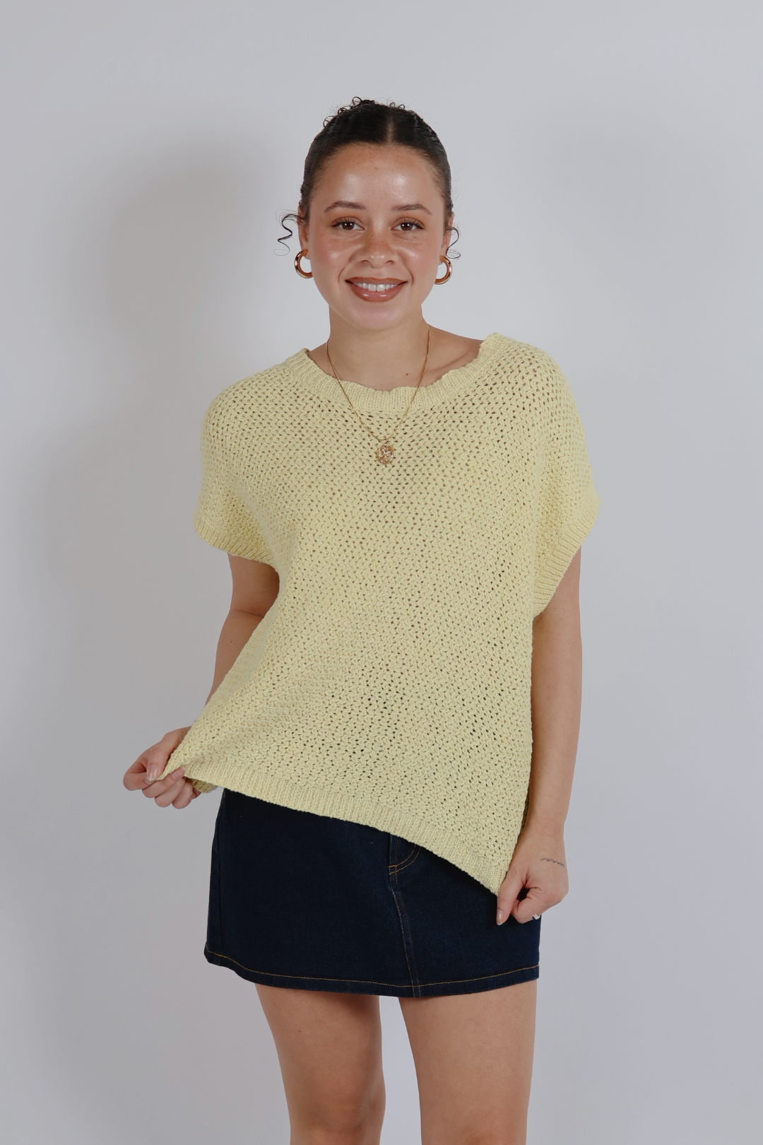 Progettato con un classico scollo rotondo, maniche ad aletta lusinghiere e finiture a coste per una finitura pulita, questo top si abbina facilmente a jeans, pantaloni o gonne. Che sia casual o elegante con gli accessori, il top in maglia Coastal Weave è il capo perfetto per l'uso quotidiano e per le facili transizioni stagionali.