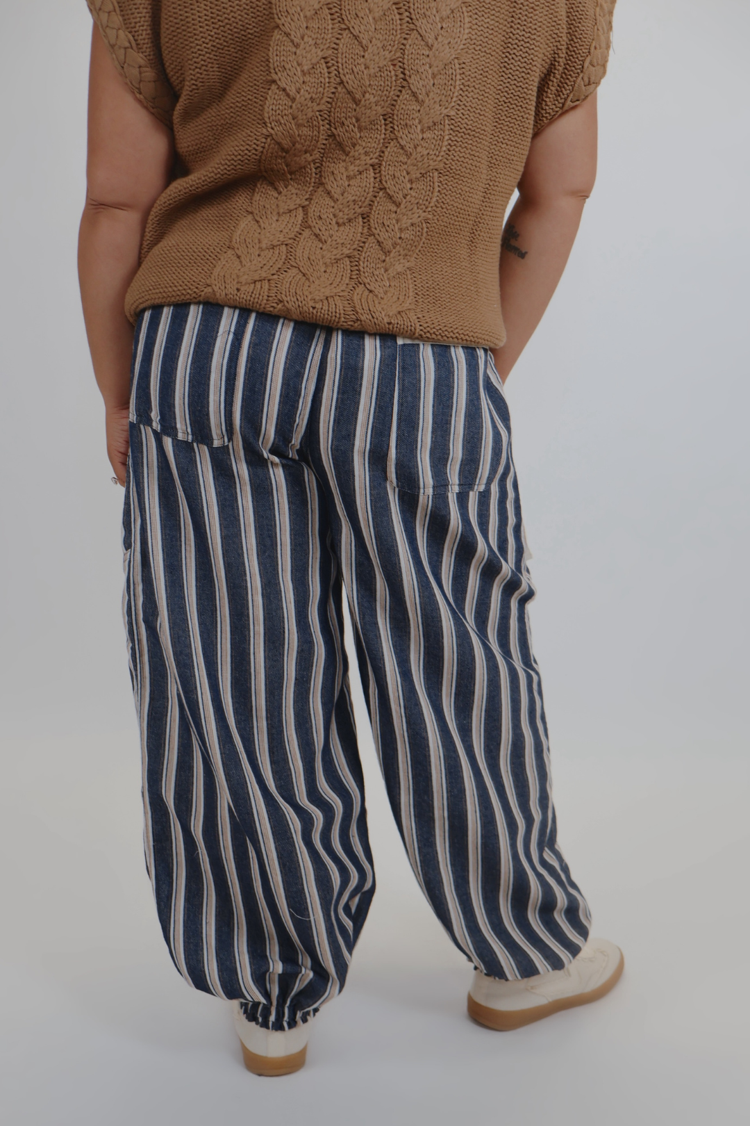 Che li abbini a una semplice t-shirt, a un comodo pullover o a una camicia abbottonata, questi pantaloni a righe soft-washed donano un'atmosfera rilassata, un mix tra la costa e il boho, a qualsiasi outfit. Ideale per commissioni, viaggi, look casual da ufficio e ogni momento intermedio.