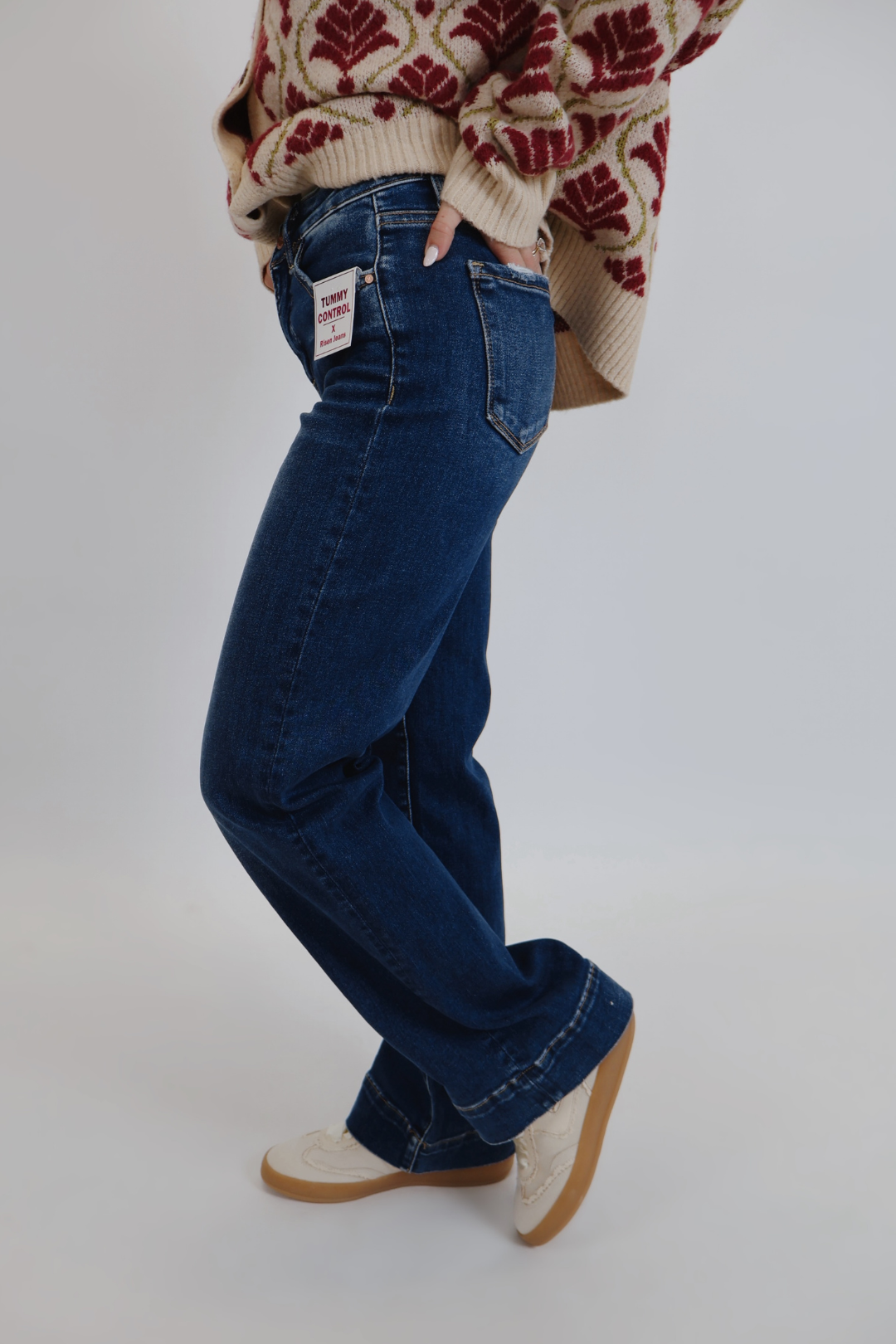 Rifiniti con leggere scoloriture e dettagli consumati sulle tasche, insieme a un ampio orlo cucito per un tocco di carattere, questo denim dal lavaggio scuro è perfetto sia per look casual che eleganti.