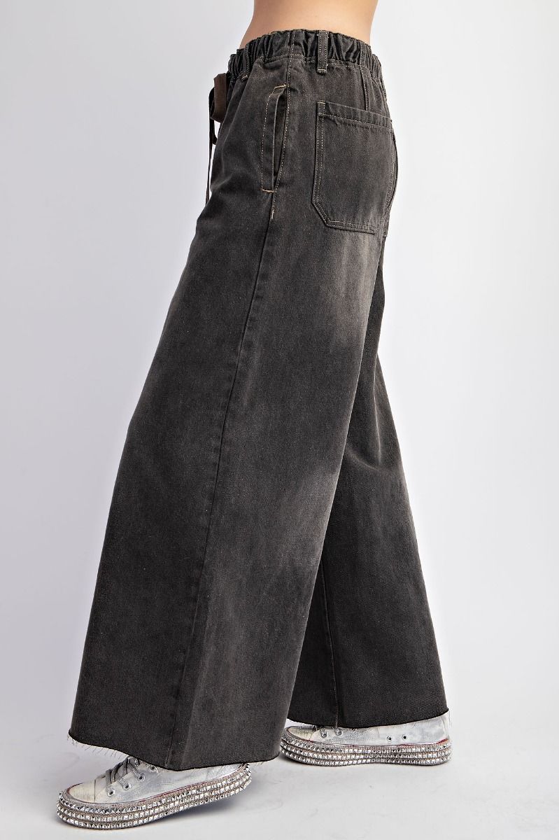 Lo stile casual incontra lo street-chic nei nostri pantaloni larghi in denim effetto minerale. Questi pantaloni in denim nero lavato presentano una silhouette ampia e rilassata, con elastico in vita e coulisse regolabile per un perfetto mix di comfort e stile. Progettati con tasche laterali e posteriori funzionali e orlo tagliato a vivo, conferiscono quel tocco disfatto e disinvolto che si abbina perfettamente a sneakers, stivali o maglie comode.