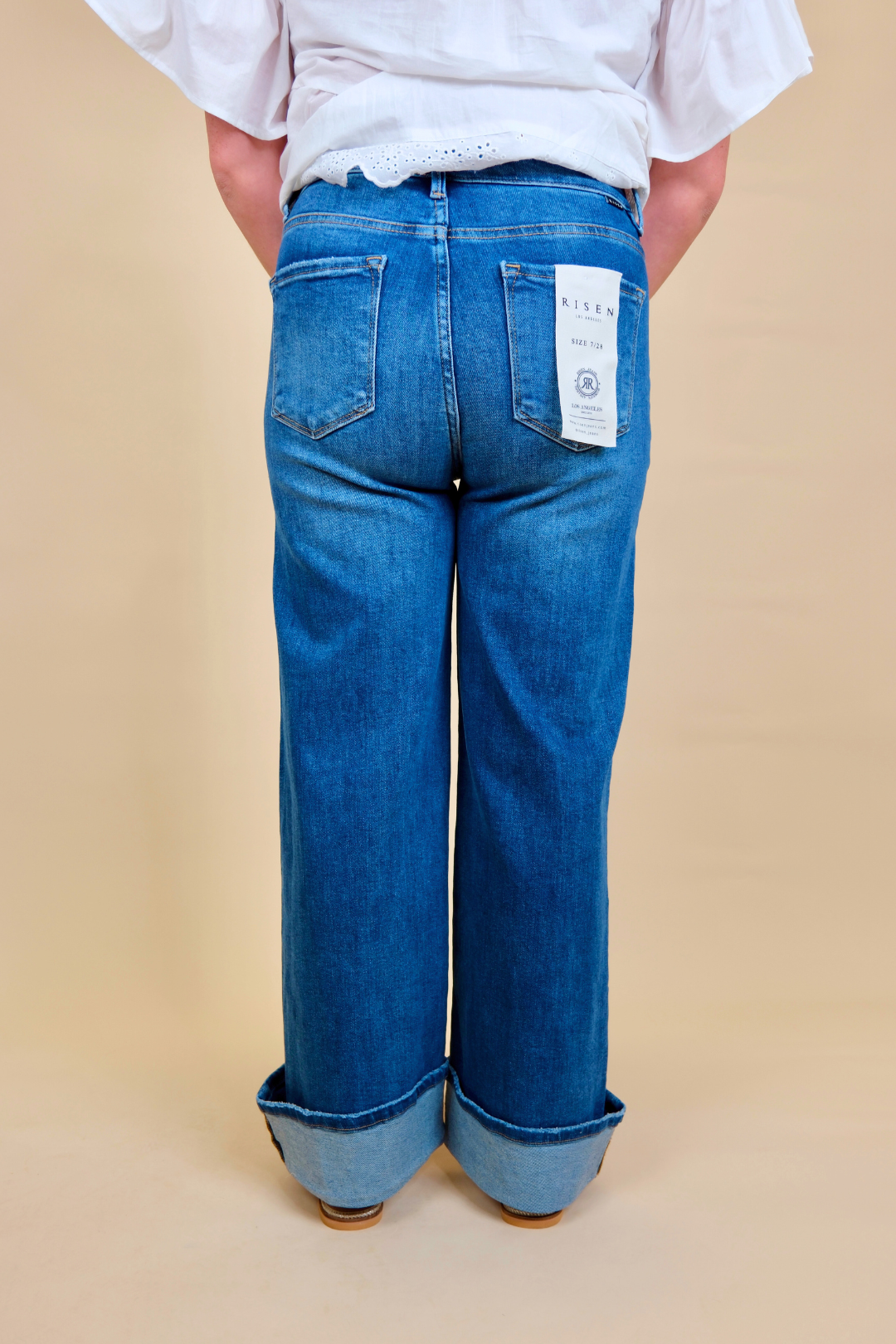 Prendi il controllo del tuo stile con Palmer! Questi jeans a vita alta alla caviglia non solo offrono una funzione snellente e modellante, ma hanno anche un ampio risvolto per un tocco di stile in più. Il mix perfetto di moda e funzionalità.