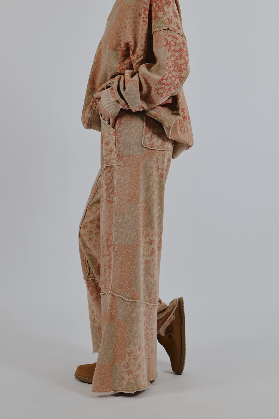 I pantaloni Soft Bloom Patchwork Terry sono l'abbinamento perfetto per i tuoi strati casual preferiti. Realizzati in morbida spugna di cotone lavata con minerali, questi pantaloni a gamba larga presentano una splendida stampa patchwork floreale multicolore che risulta disinvolta, rilassata e di tendenza per la stagione.