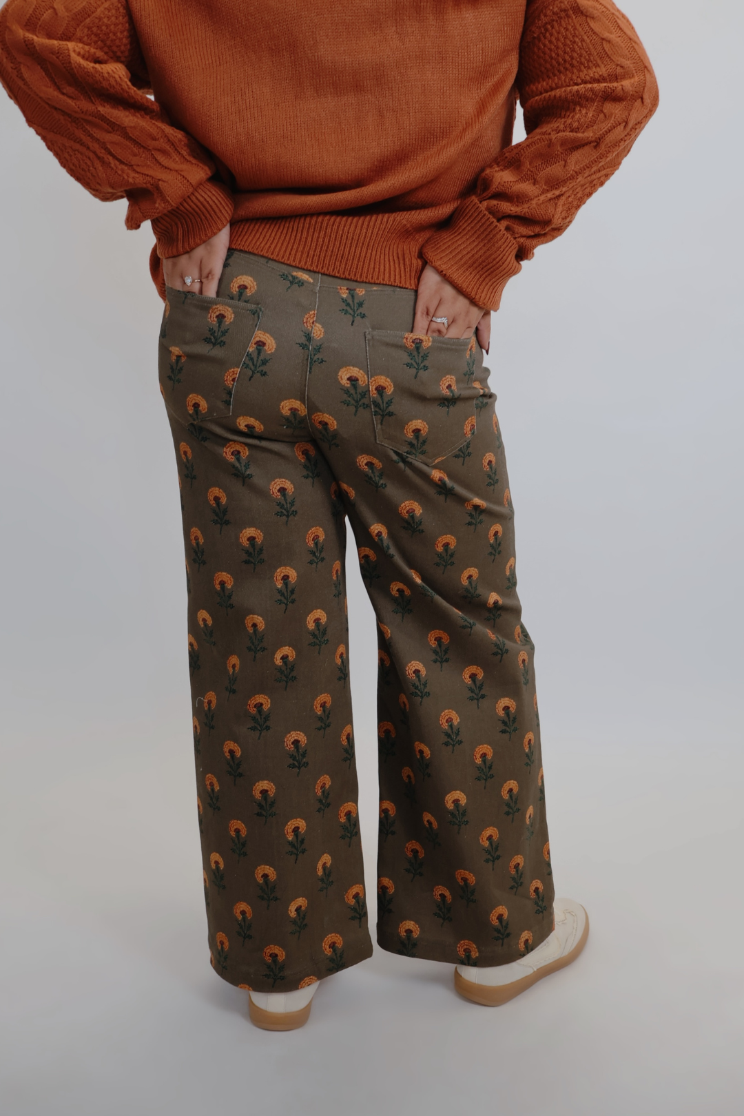 Immergiti in un fascino disinvolto con i pantaloni a gamba larga Wild Meadow, dove il comfort senza tempo incontra lo stile boho. Questi pantaloni in misto cotone intrecciato presentano una giocosa stampa botanica che dona un tocco di energia vintage a qualsiasi outfit. Progettati con una vita alta lusinghiera, chiusura con cerniera e bottone e pratiche tasche applicate anteriori e posteriori, offrono il perfetto mix di struttura e praticità.